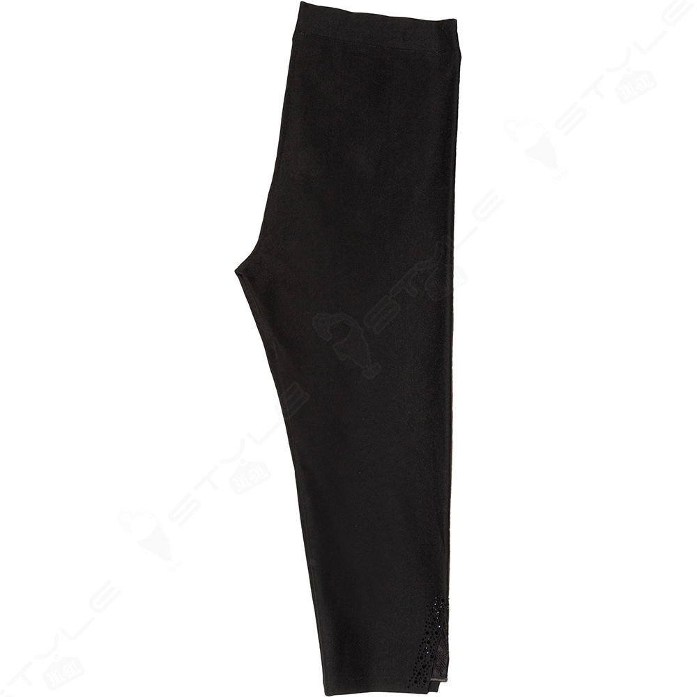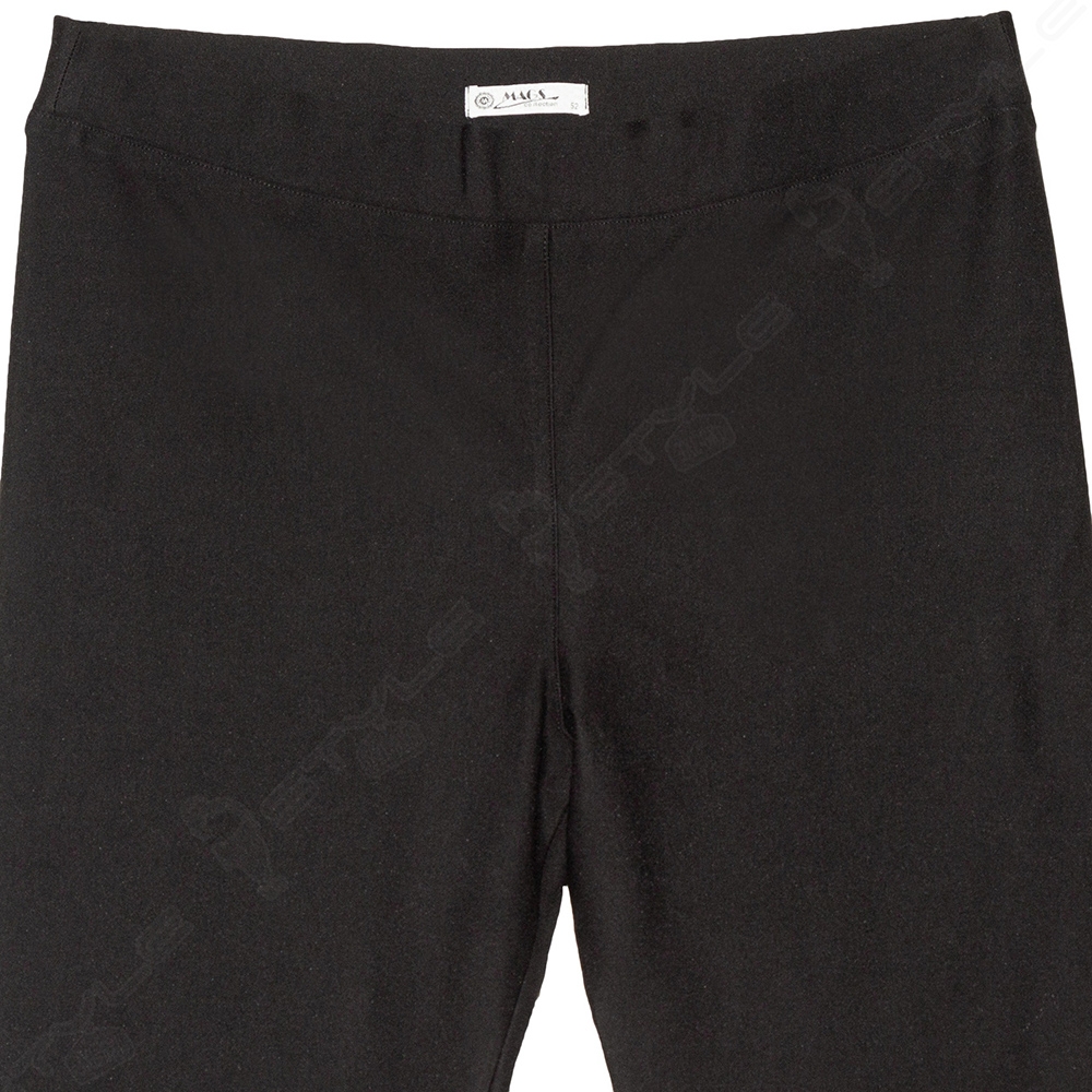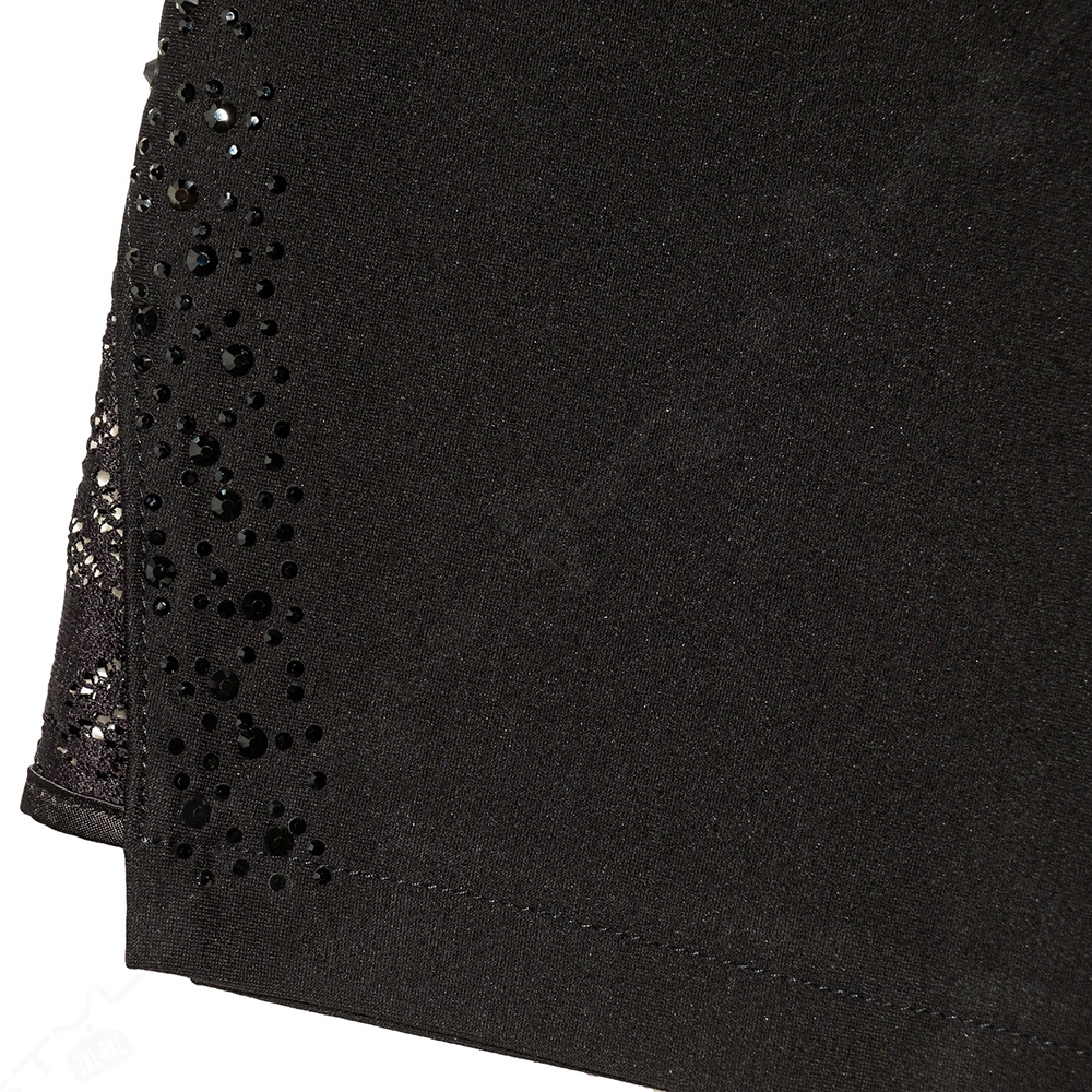 Покрой прямой, пояс на широкой резинке, без карманов, сбоку каждая штанина декорированна гепюром и стразами.