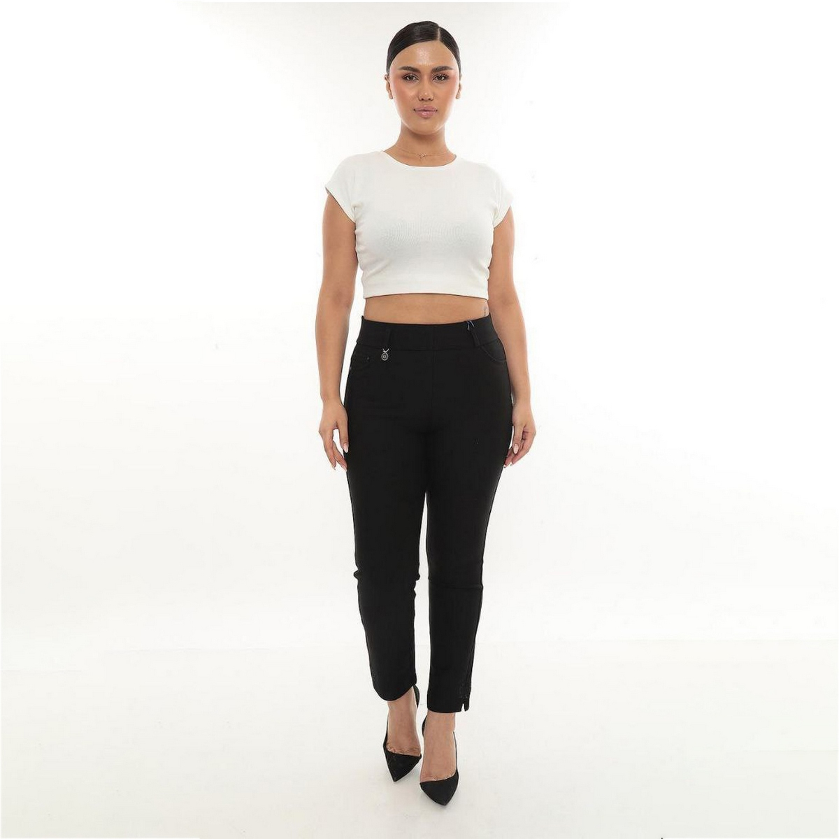 Фасон - заужены к низу, пояс на широкой резинке без молнии, впереди два кармана - обманки, сзади два накладных кармана.