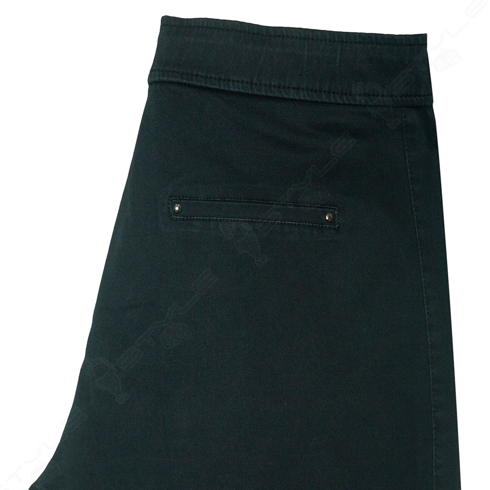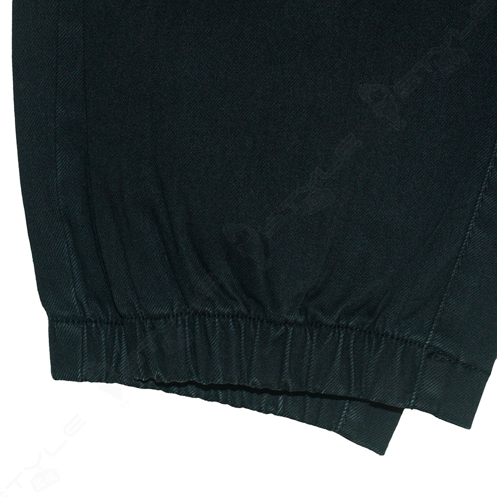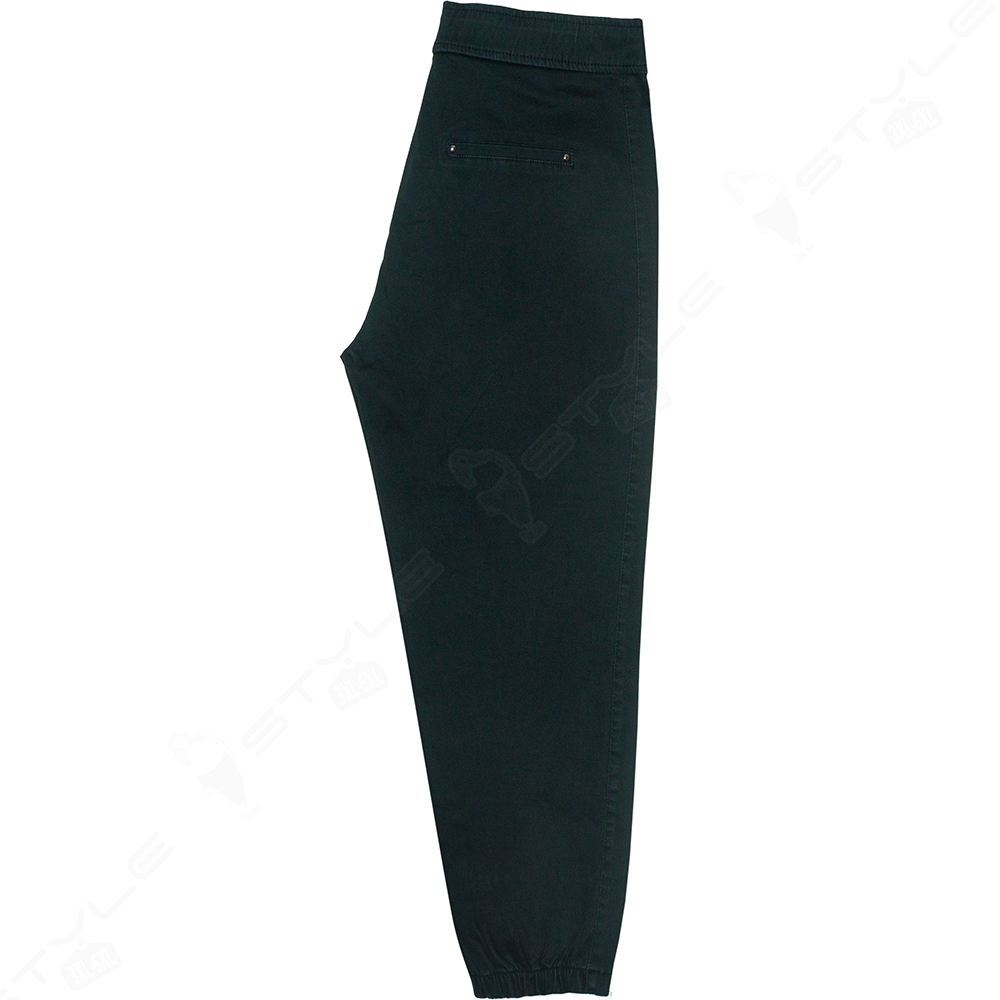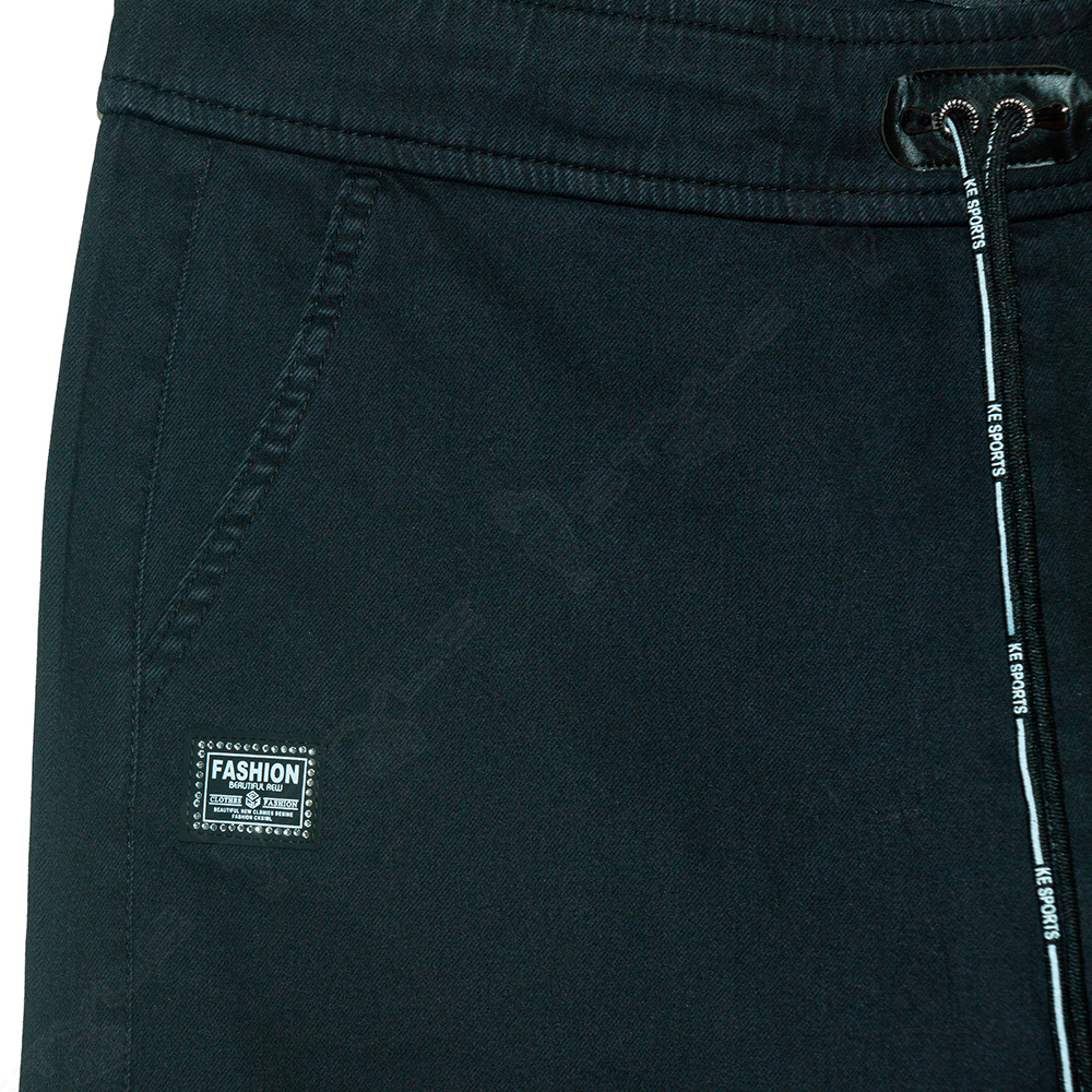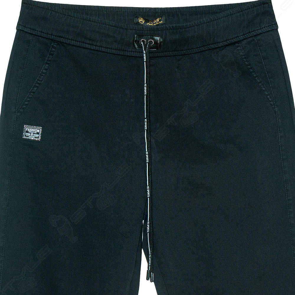 Фасон прямой, пояс на широкой резинке со шнурком, впереди два кармана, сзади два кармана - обманки, низ штанины на резинке.