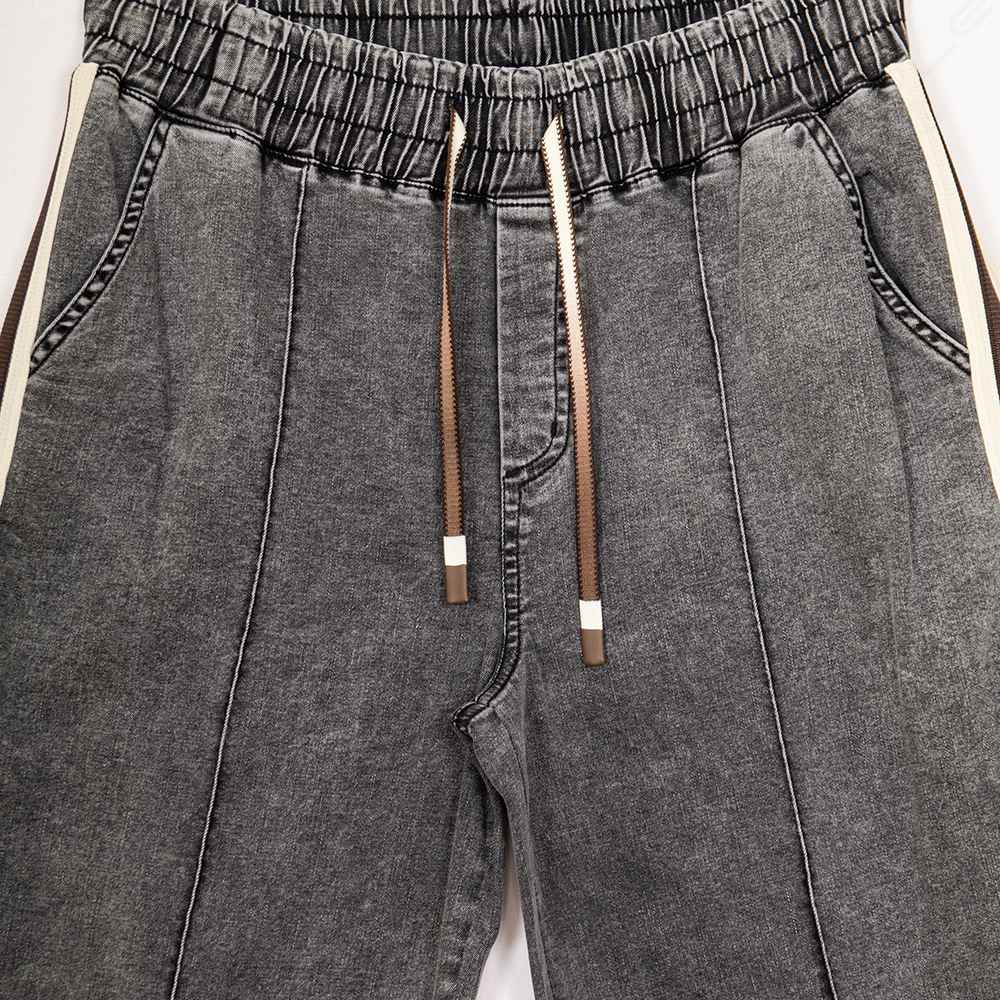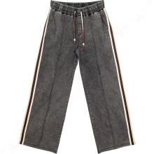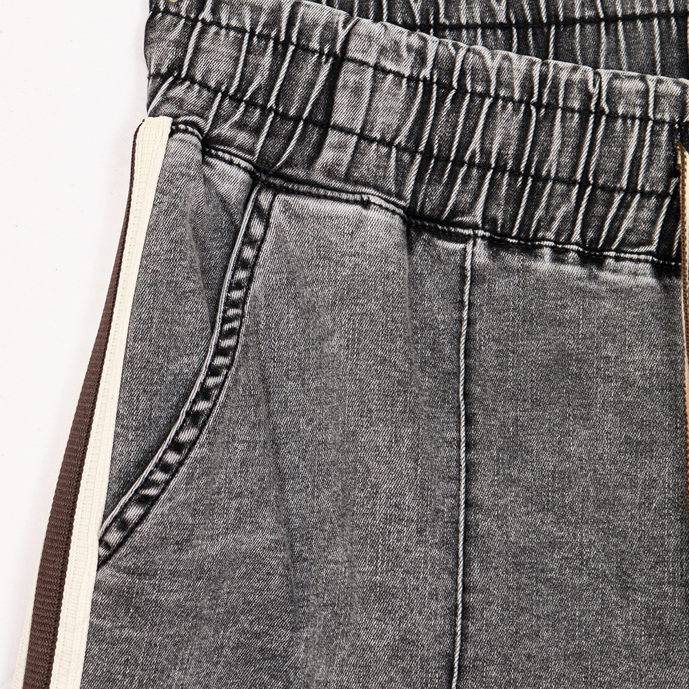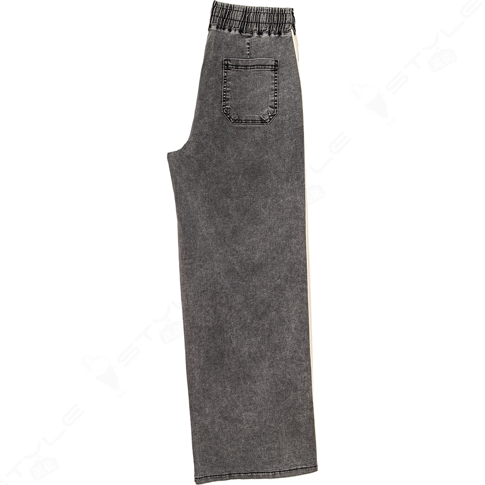 Покрой прямой, пояс на широкой резинке без молнии, впереди и сзади есть карманы.