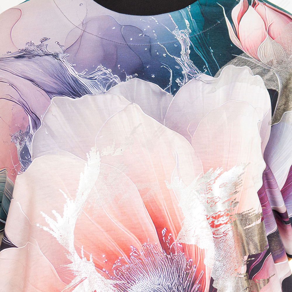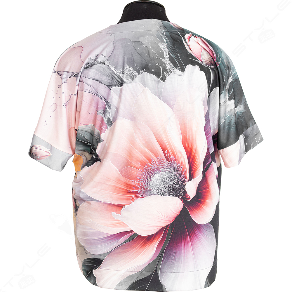 Фасон прямой, рукав короткий, горловина круглая.