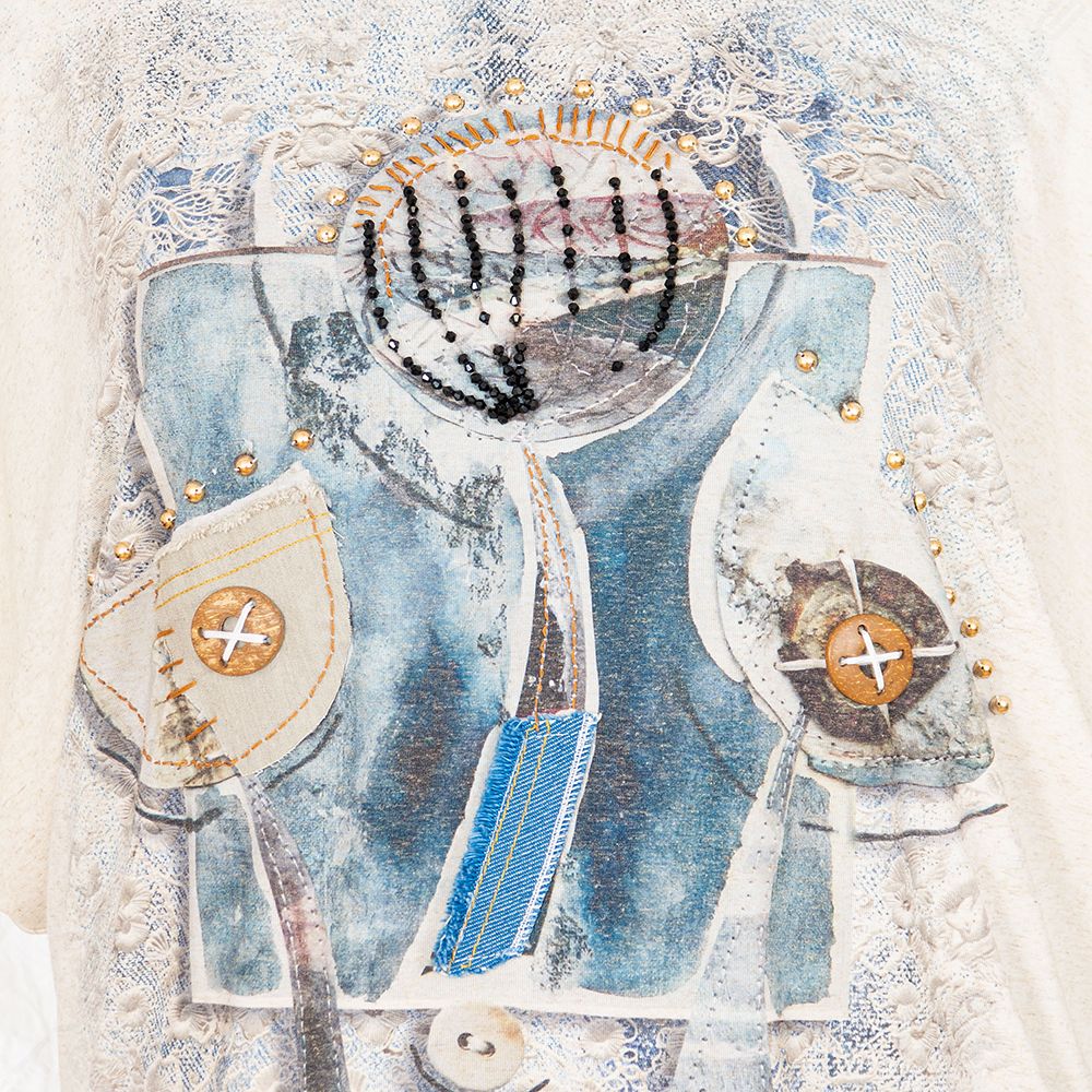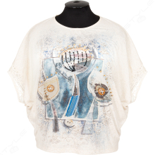Фасон свободный, горловина круглая, рукав короткий.