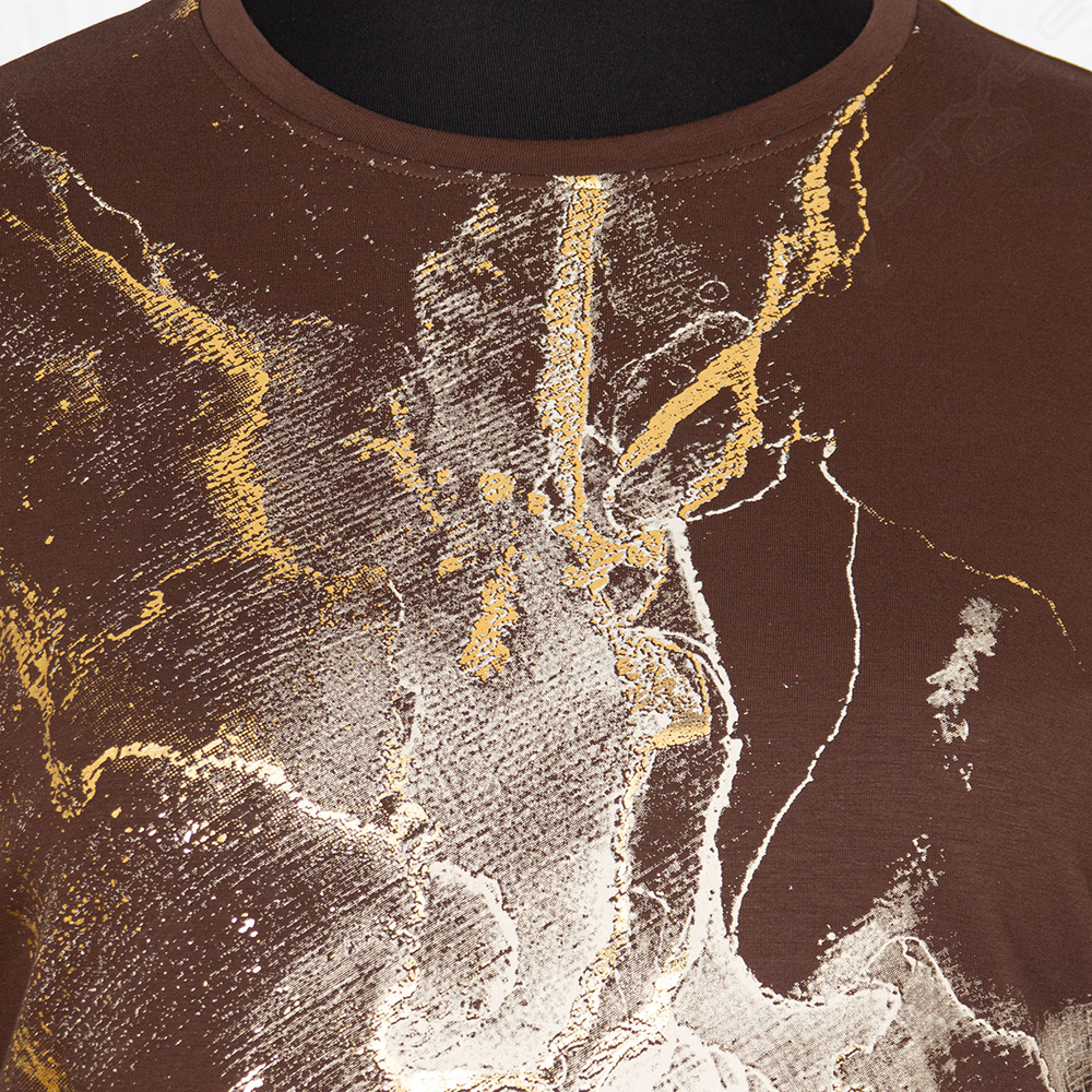 Фасон прямой, рукав короткий, горловина круглая.