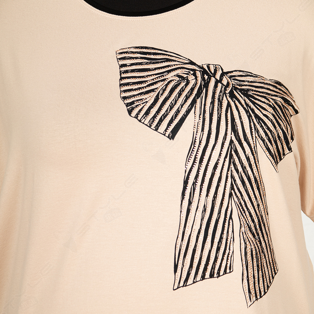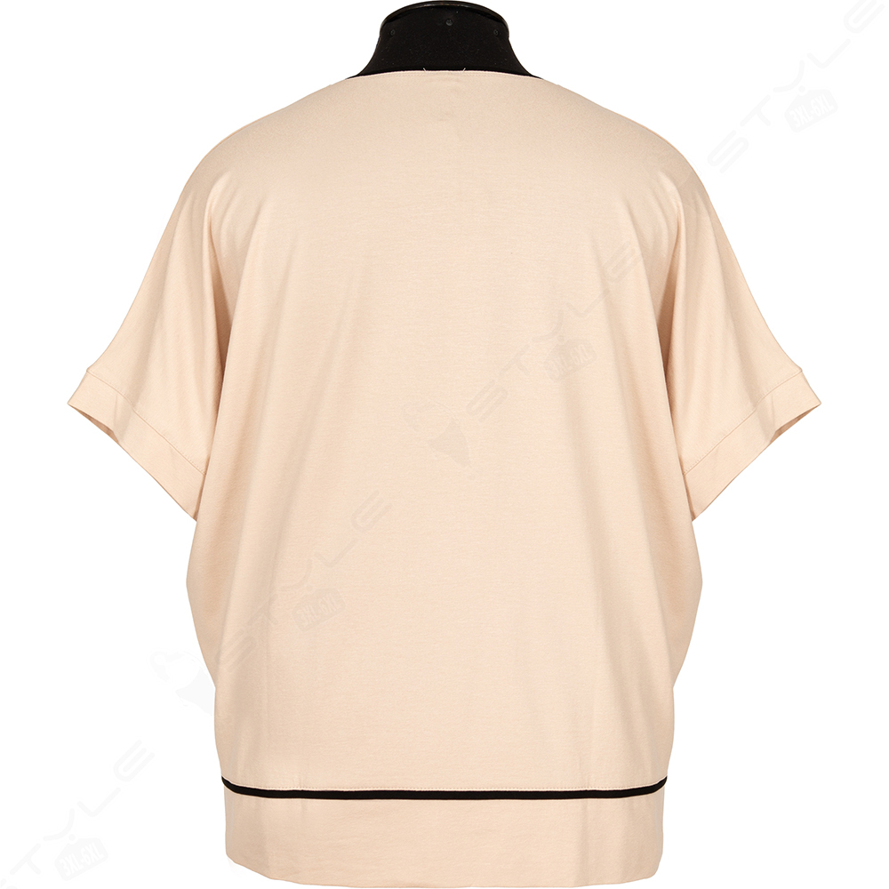 Фасон прямой, рукав короткий, горловина круглая.