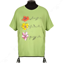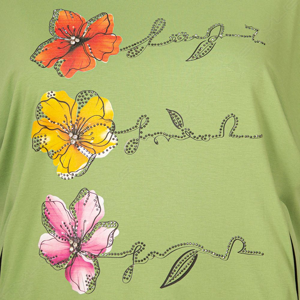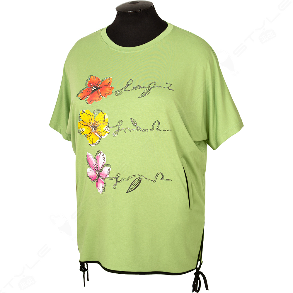 Фасон прямой, горловина круглая, рукав короткий, по бокам есть карманы.