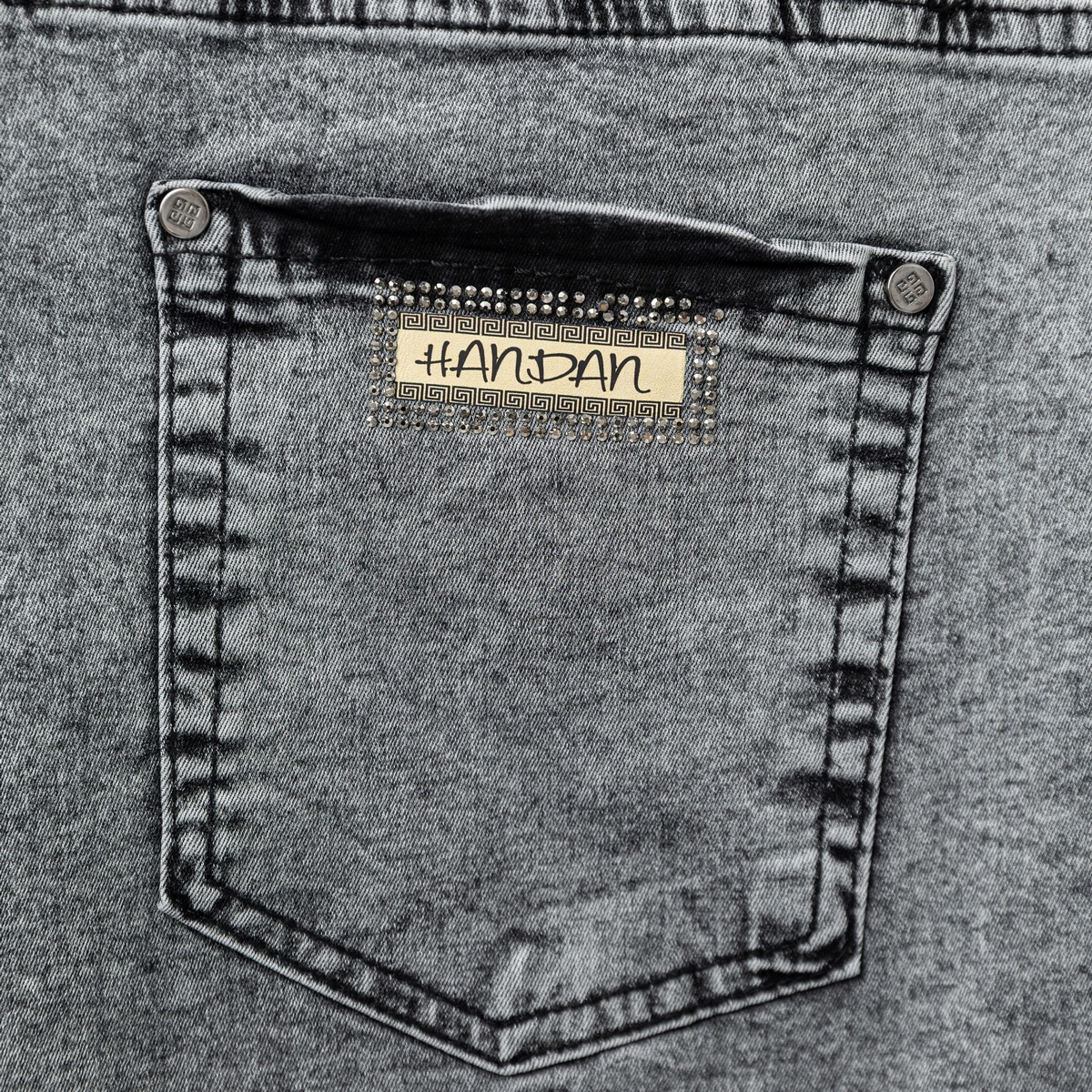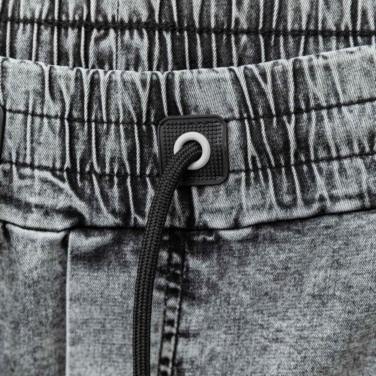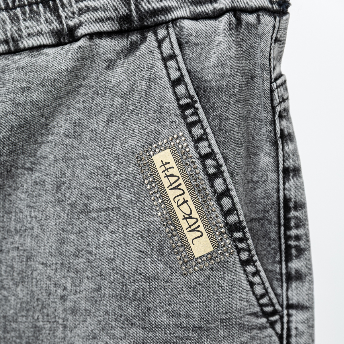 Покрой прямой, к низу слегка заужены, пояс на широкой резинке, впереди и сзади по два кармана.