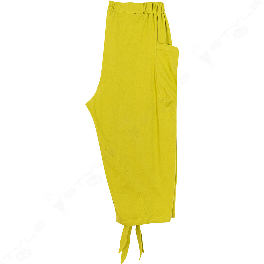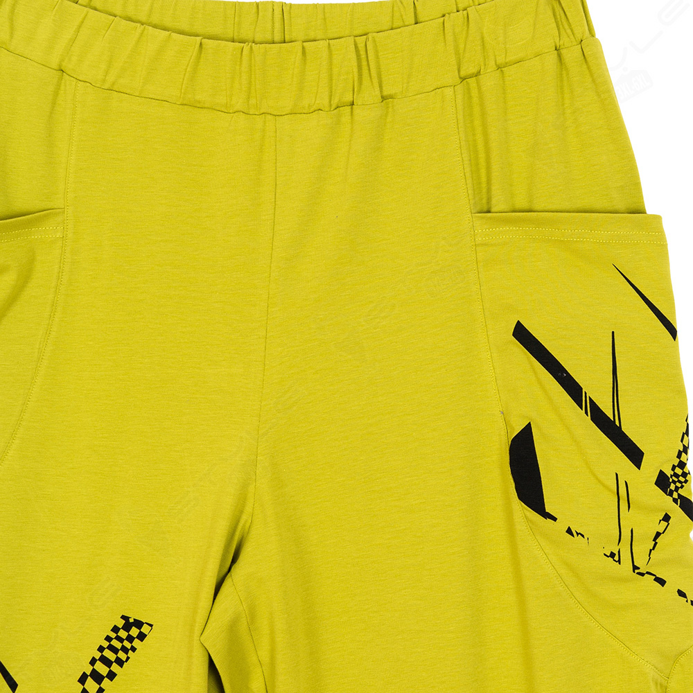 Покрой свободный, пояс на широкой резинке, по бокам есть два кармана.