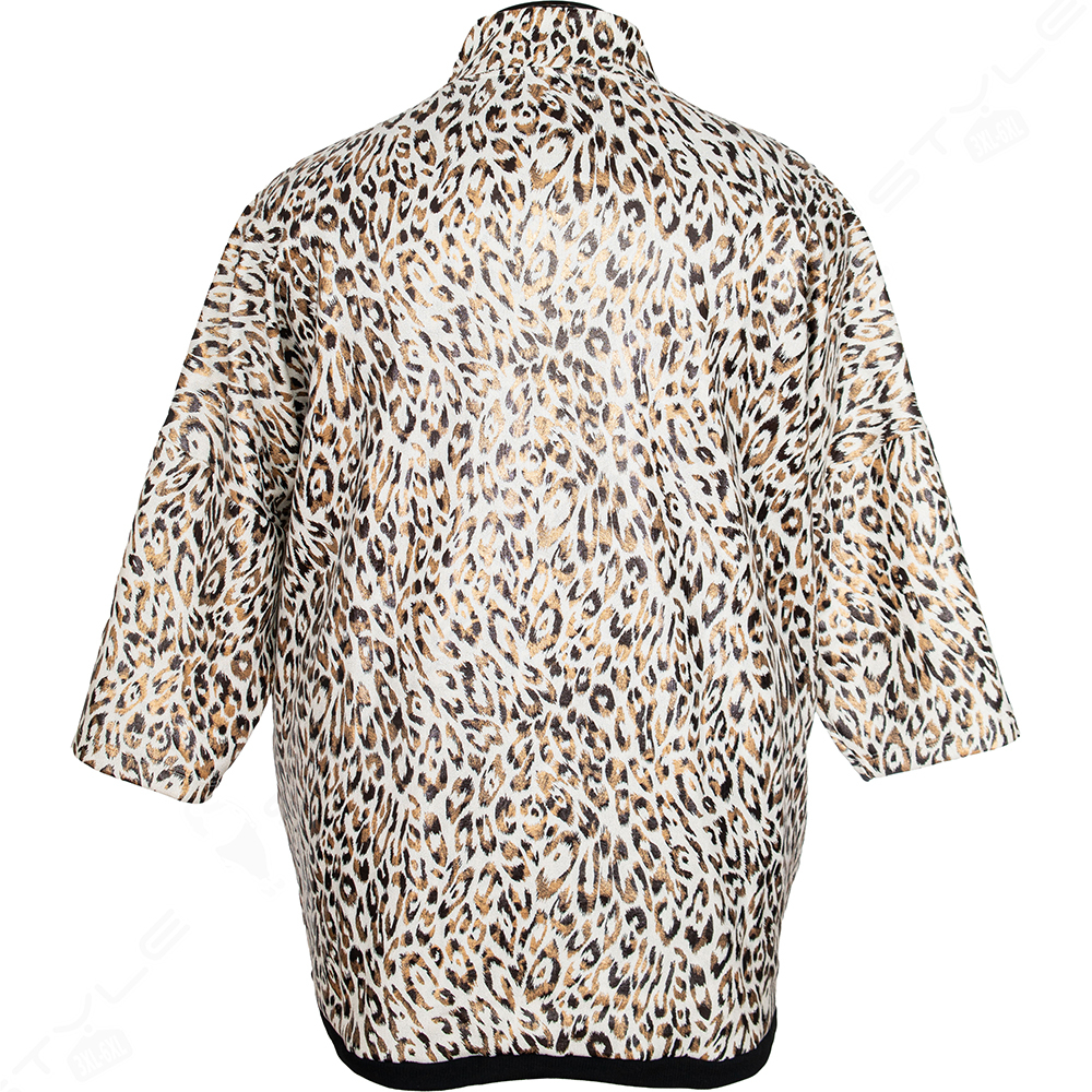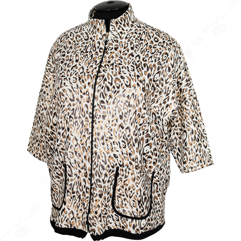 Фасон прямой, горловина стоичка, рукав 7/8, полностью на молнии, по бокам есть два накладных кармана.