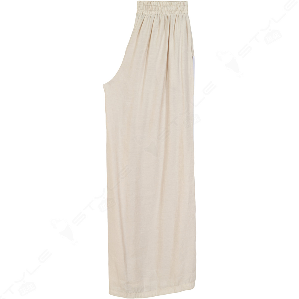 Брюки свободные - палаццо, без молнии, пояс на широкой резинке, впереди два кармана.