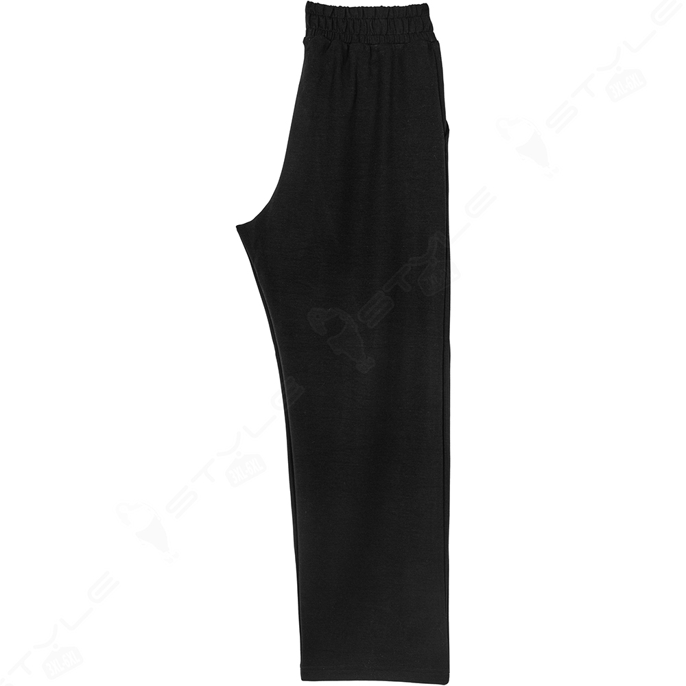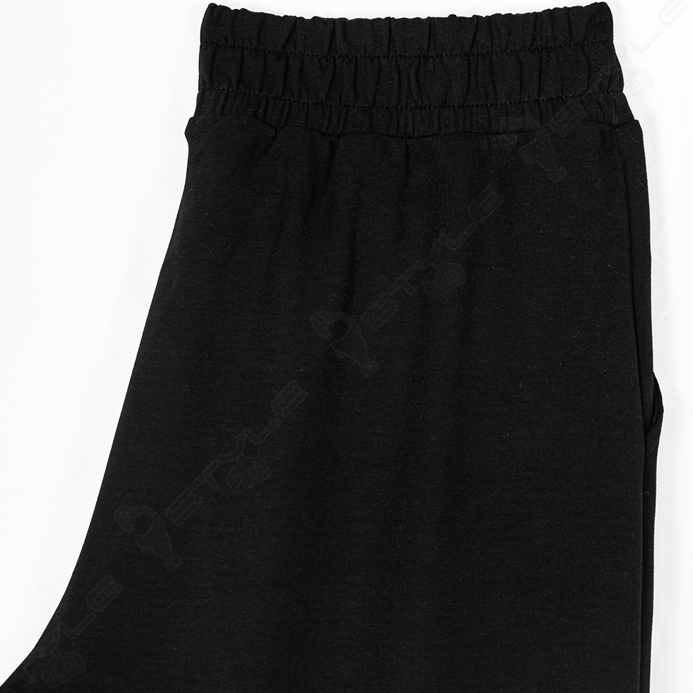 Брюки прямые, пояс на широкой резинке, впереди два кармана.