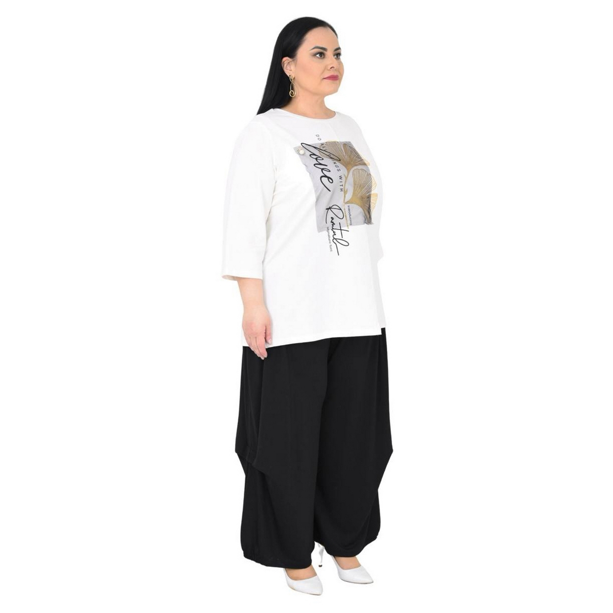 Брюки свободные, без молнии, пояс на широкой резинке.
