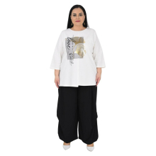 Фасон блузона прямой, рукав 3/4, горловина круглая.