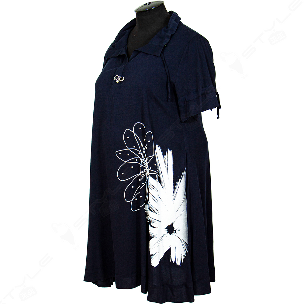 Выполнено из высококачественного легкого материала , покрой трапециевидный, горловина рубашечного типа, рукав короткий, по бокам есть два кармана.