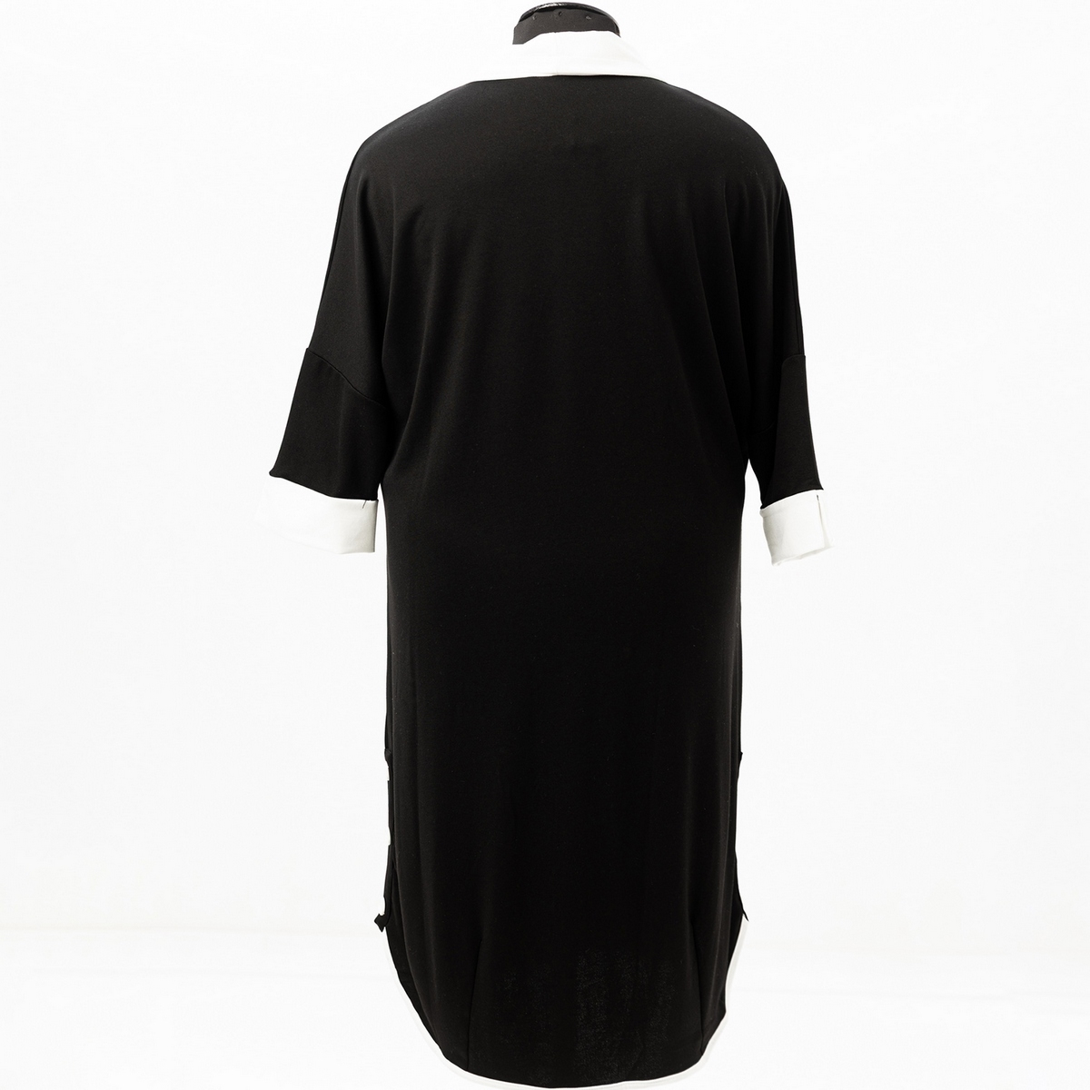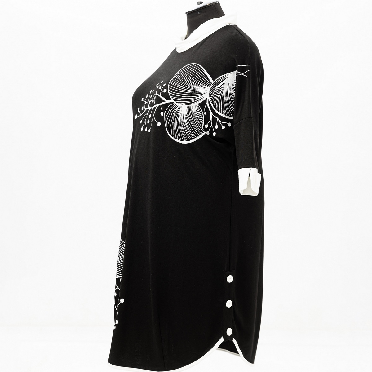 Покрой прямой, горловина - хомут, длина рукава 3/4.
