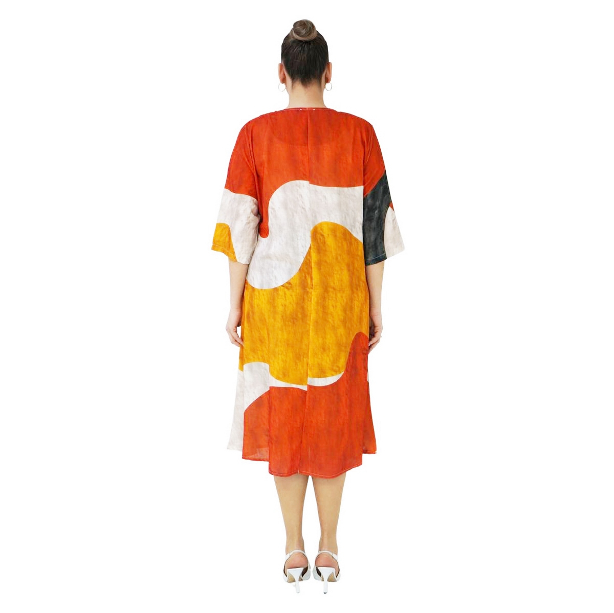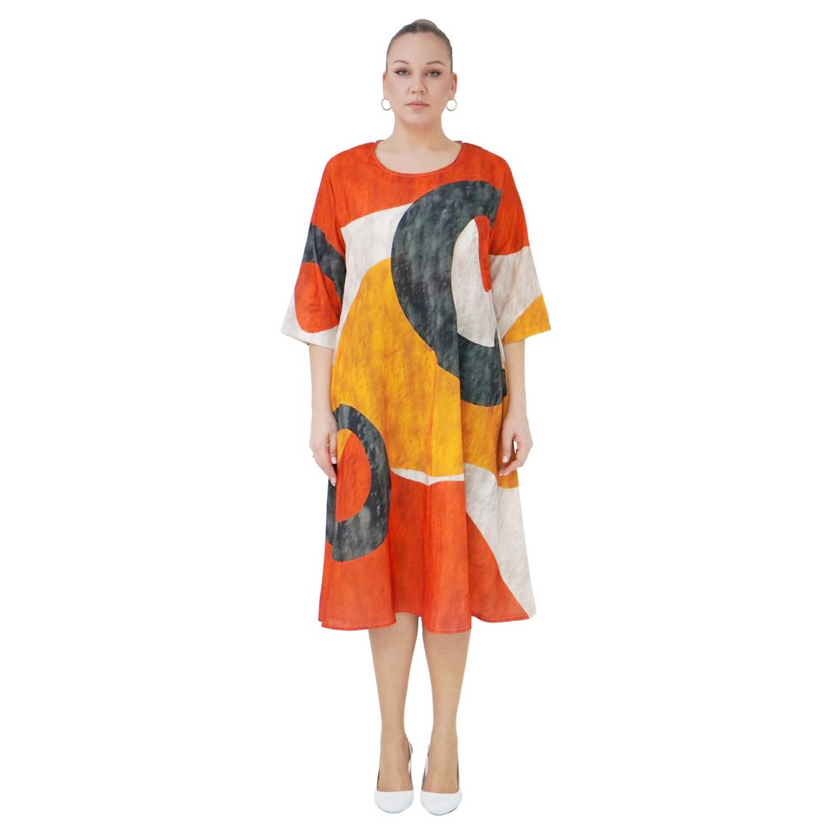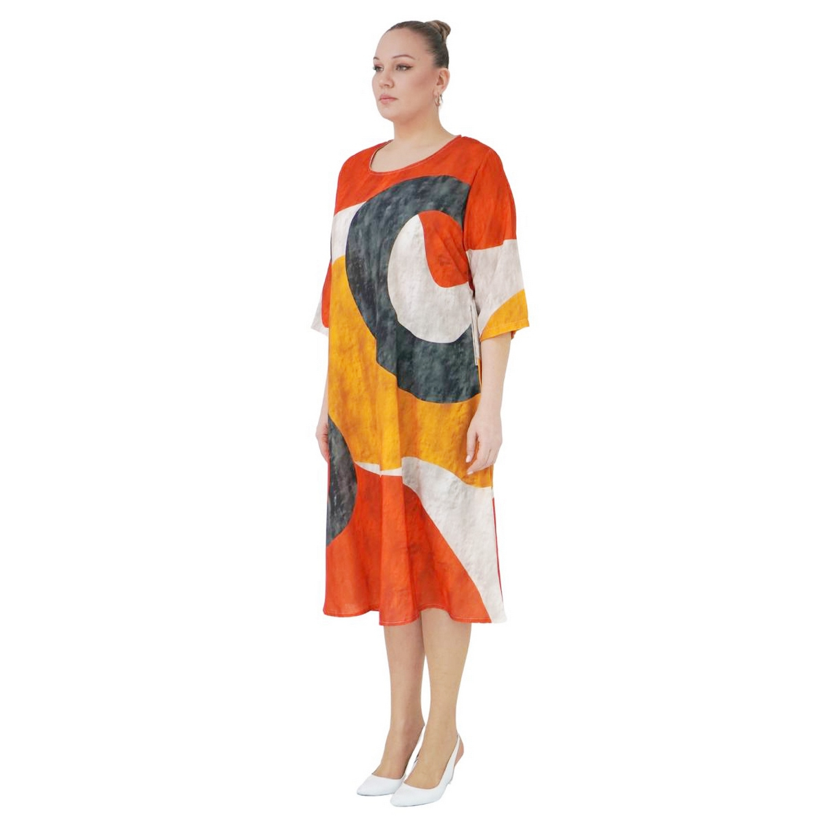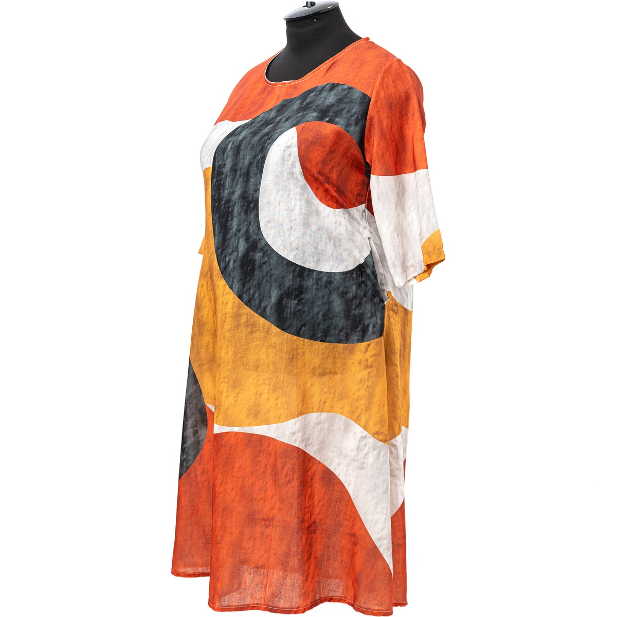 Выполнено из высококачественного материала , покрой прямой, горловина круглая, рукав короткий, по бокам есть карманы, ткань не тянется.