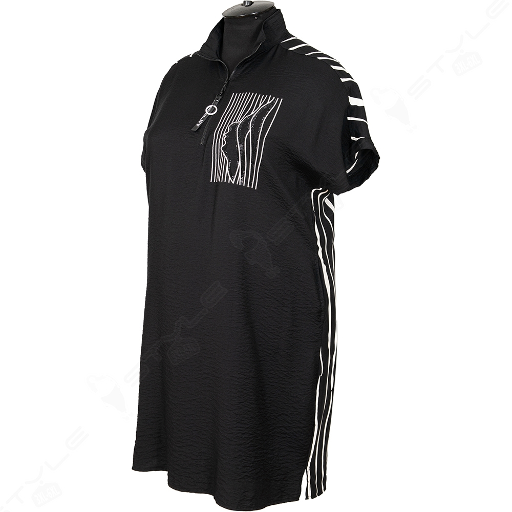 Выполнено из высококачественного легкого материала , покрой прямой, горловина - стоичка , рукав короткий, по бокам есть два кармана.