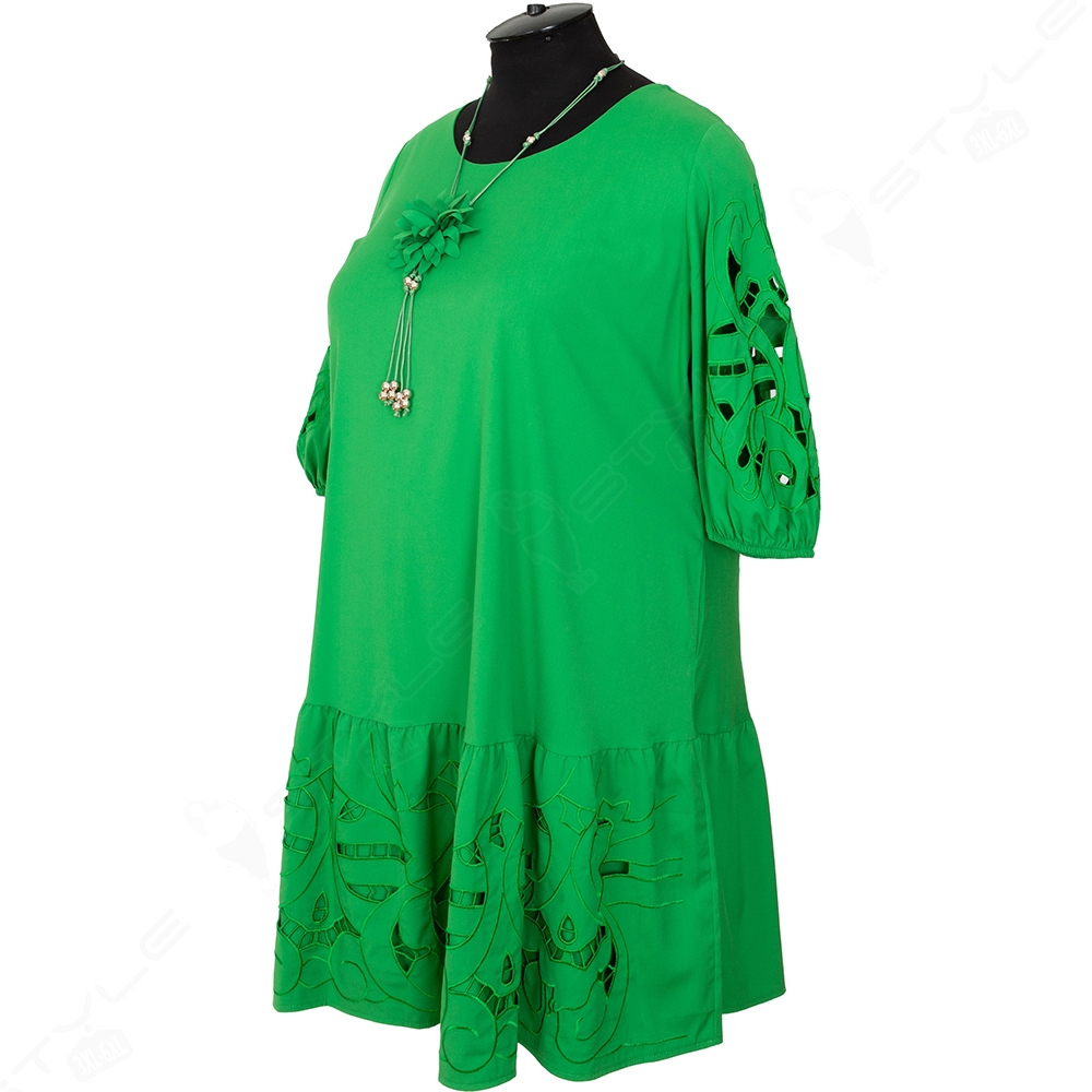 Выполнено из высококачественного материала , покрой трапециевидный, горловина круглая, рукав 3/4, по бокам есть карманы.