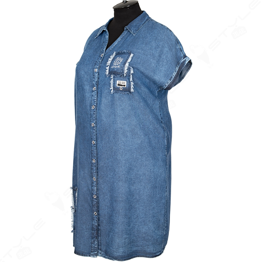 Выполнено из высококачественного легкого материала , покрой прямой, горловина рубашечного типа, рукав короткий, по бокам есть карманы.