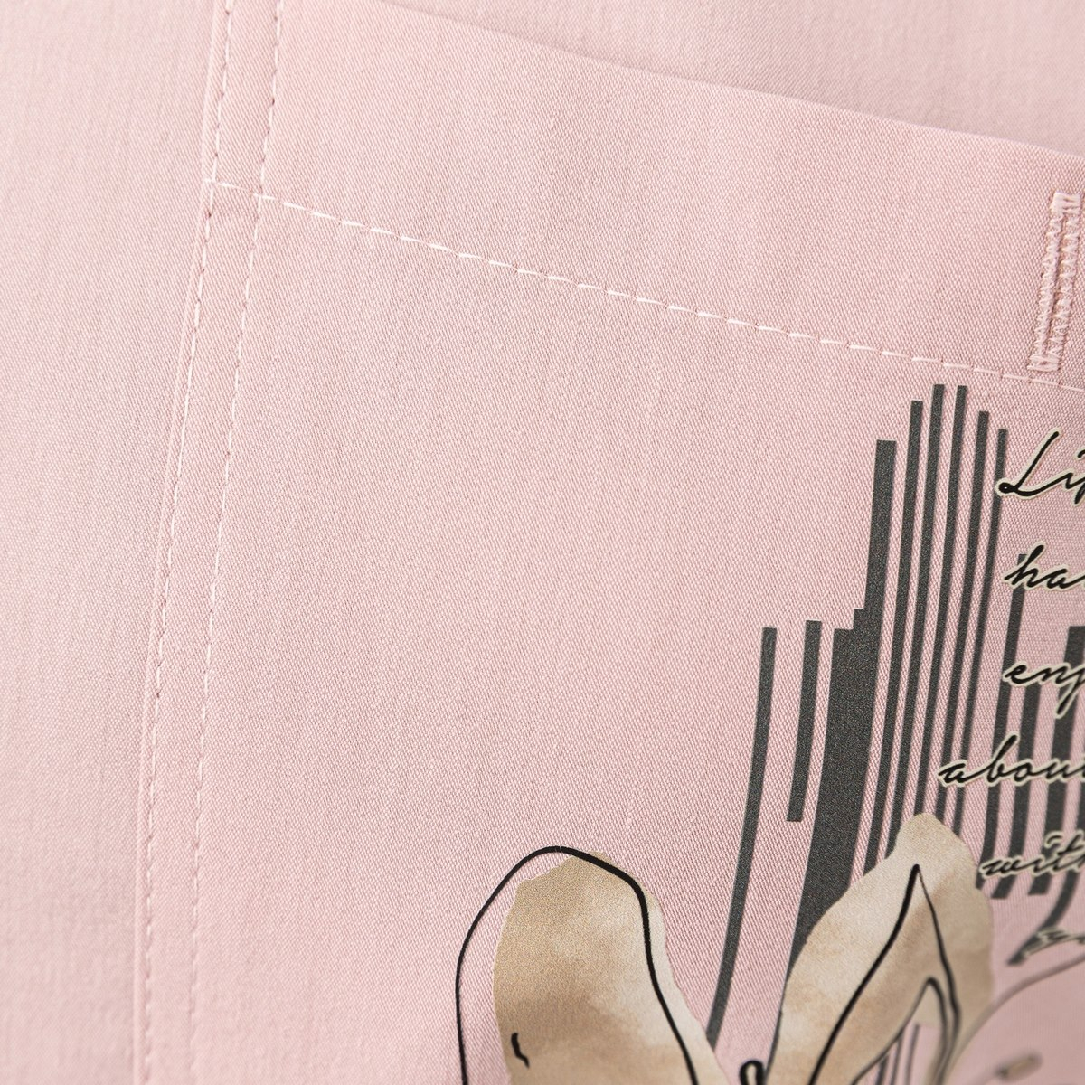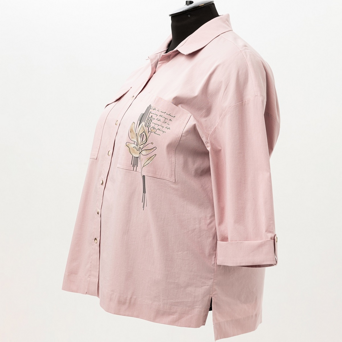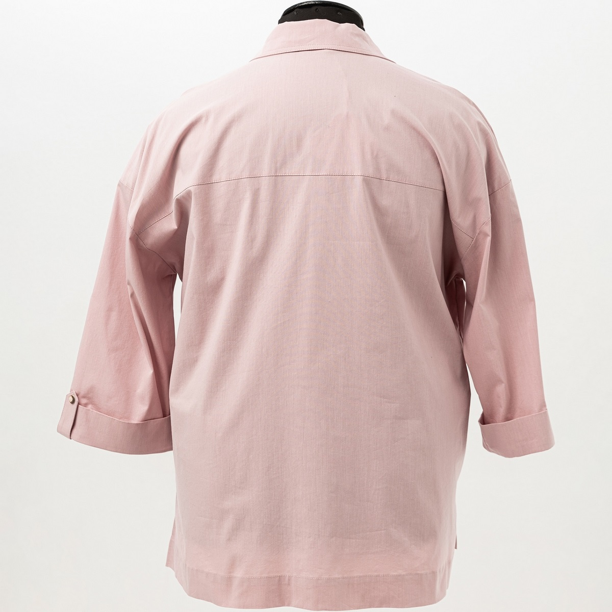 Фасон прямой, воротник рубашечного типа, рукав 3/4, застегивается на хлястик.