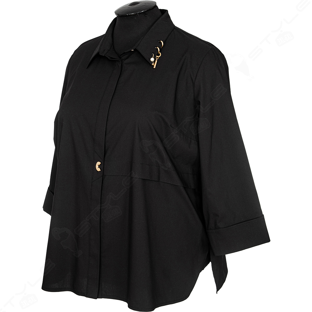 Фасон прямой, воротник рубашечного типа, рукав 7/8.