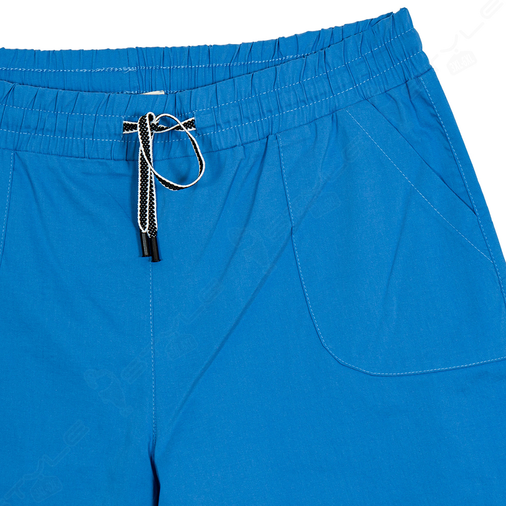 Покрой прямой, пояс на широкой резинке со шнурком, впереди есть два кармана, сзади без карманов.